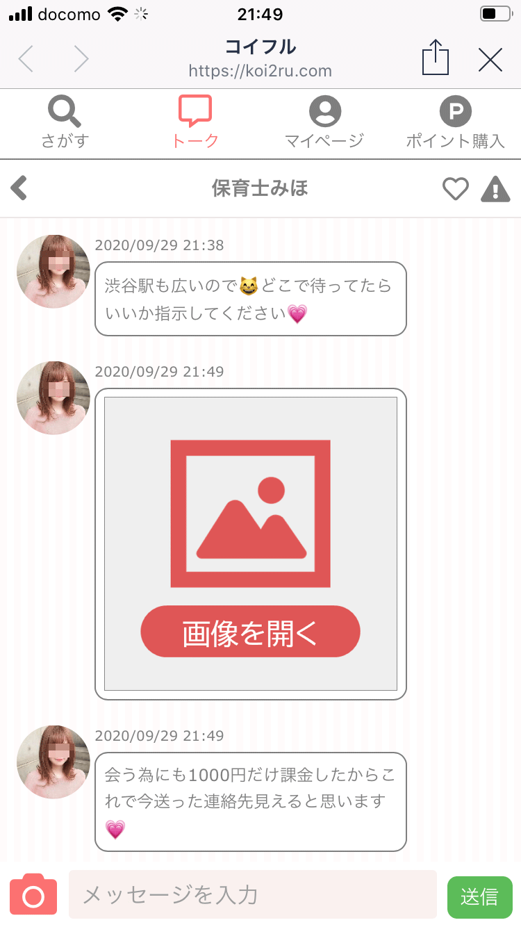 メッセージを送ろうにもポイント購入サイトへ強制誘導されてしまいます。